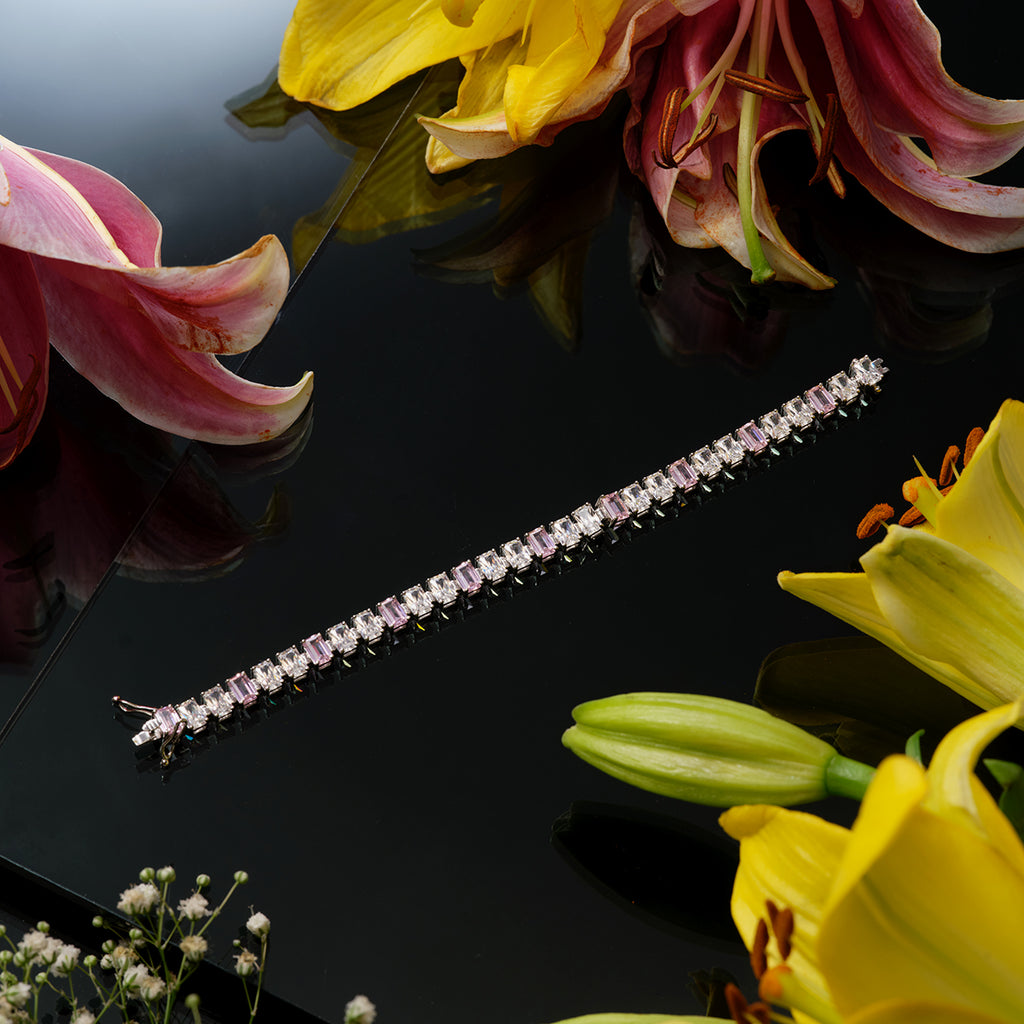 An enchanting play of pink and white, this bracelet turns geometry into pure glamour.
